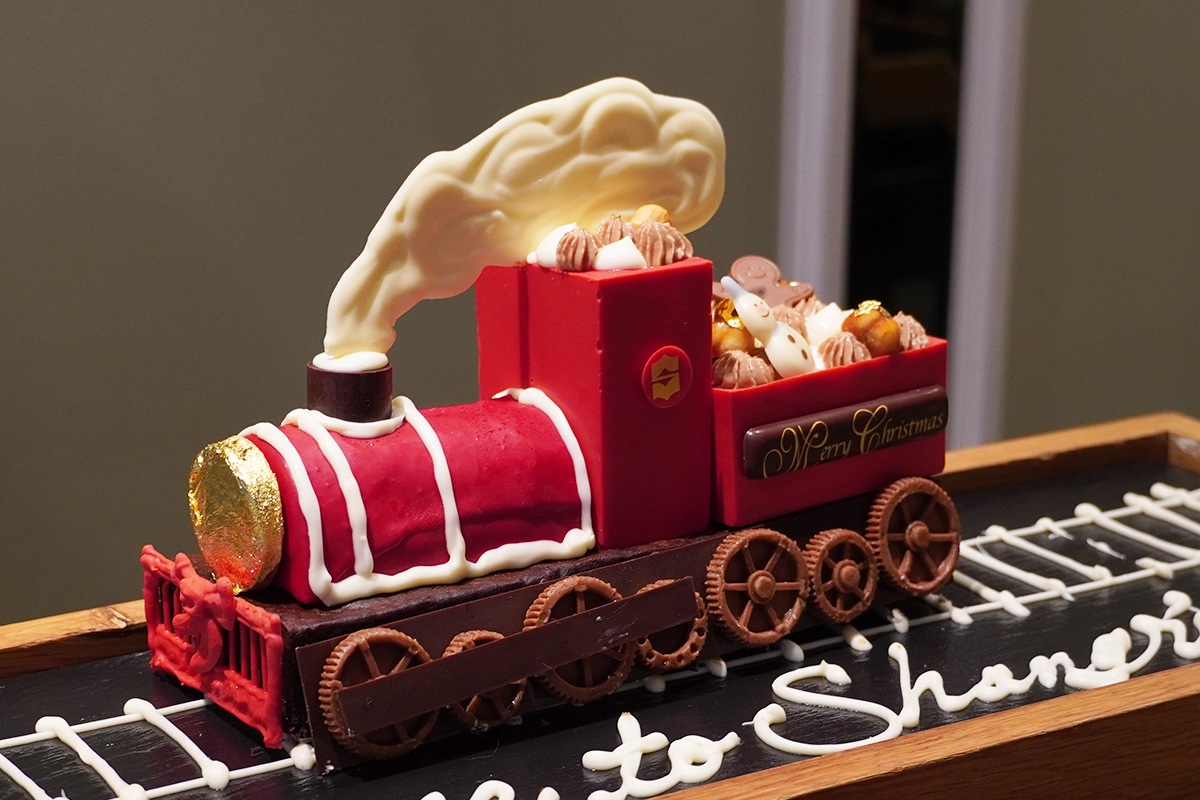 限定20台の「クリスマストレインケーキ」。いちごムースの車体に、ティラミスの荷台、そしてガトーショコラの土台が連なっており、1台で様々な味わいを楽しめるケーキです。