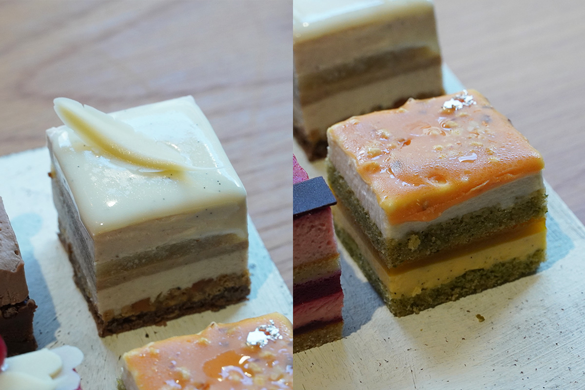 プラリネナッツのムースに香ばしいプラリネクリーム、さらにエスプレッソジュレを重ねた奥行きのある味わい。