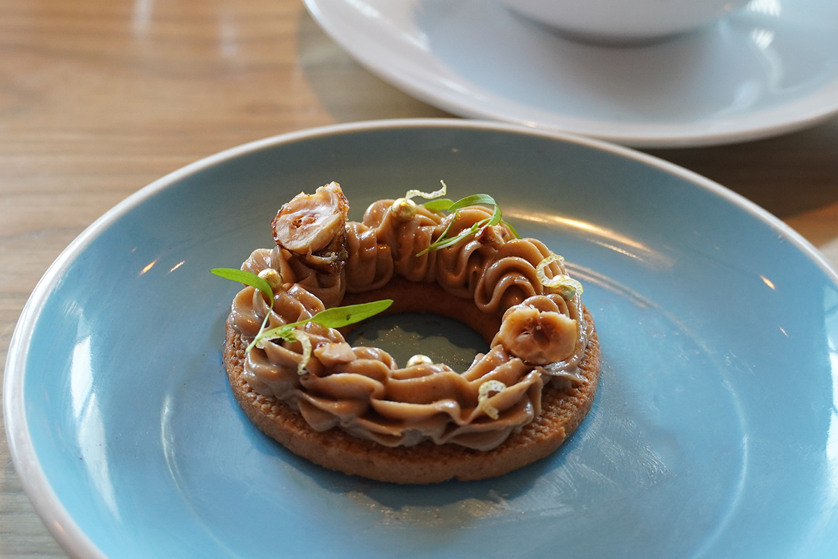リング状のサブレとヘーゼルナッツプラリネ入りのバタークリームです。ザクザク食感、香りの良さが楽しめます。