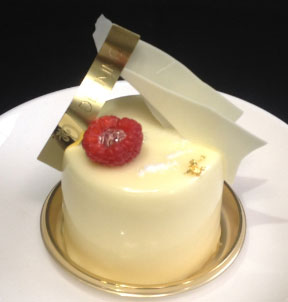 この「メリッサ」は、ヨーロッパのハーブ、レモンバームの別名でもありハチミツの妖精の意味をもつその名の通り、レモンの香りの生地としっとりのハチミツスポンジで優しさをアニスの香りのパイナップルとフランボワーズで力強さを表してます。