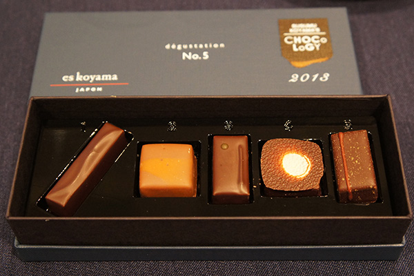 その品評会で5タブレットを獲得した商品がイチオシ商品「ススム コヤマ チョコロジー 2013」です。品評会のテーマに沿ったNo.1〜No.5のショコラがセットになっています。
