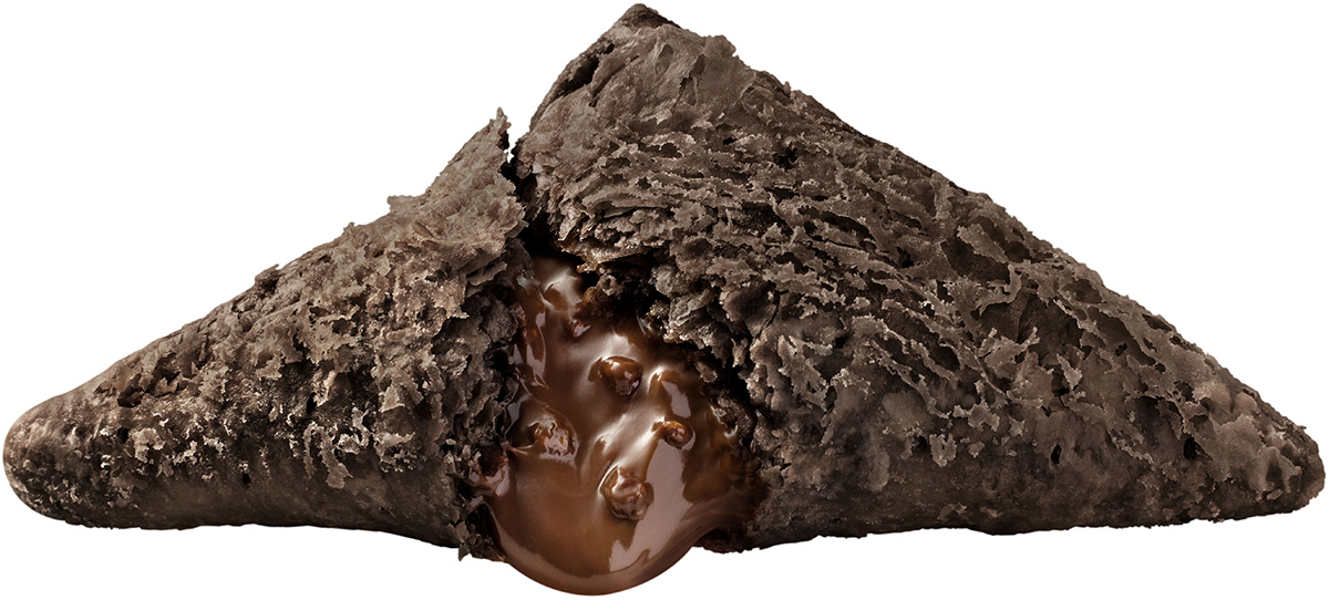 不動の定番商品である「三角チョコパイ 黒」は、2023年にチョコクリームをより濃厚な味わいにリニューアル。チョコクリームと、チョコクリームに入ったアーモンドの食感、サクサクのパイ生地のハーモニーを楽しめる。