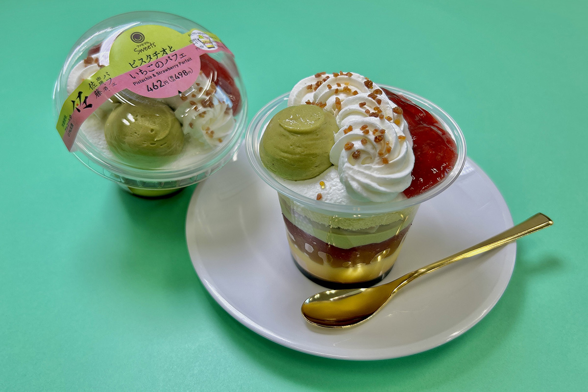 北海道ファミマ限定!札幌シメパフェ人気店監修「ピスタチオといちごのパフェ」