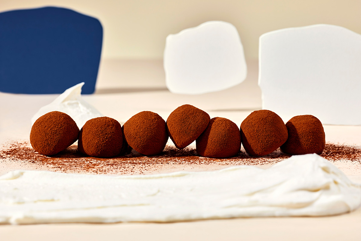 冬の放牧牛乳を加えた北海道産生クリームを生チョコレートで包んだ、冬のミルクの甘い香りとコクを味わう生トリュフチョコレート。作りたてを冷凍しているため、北海道のフレッシュな素材の味をそのまま楽しむことができる。