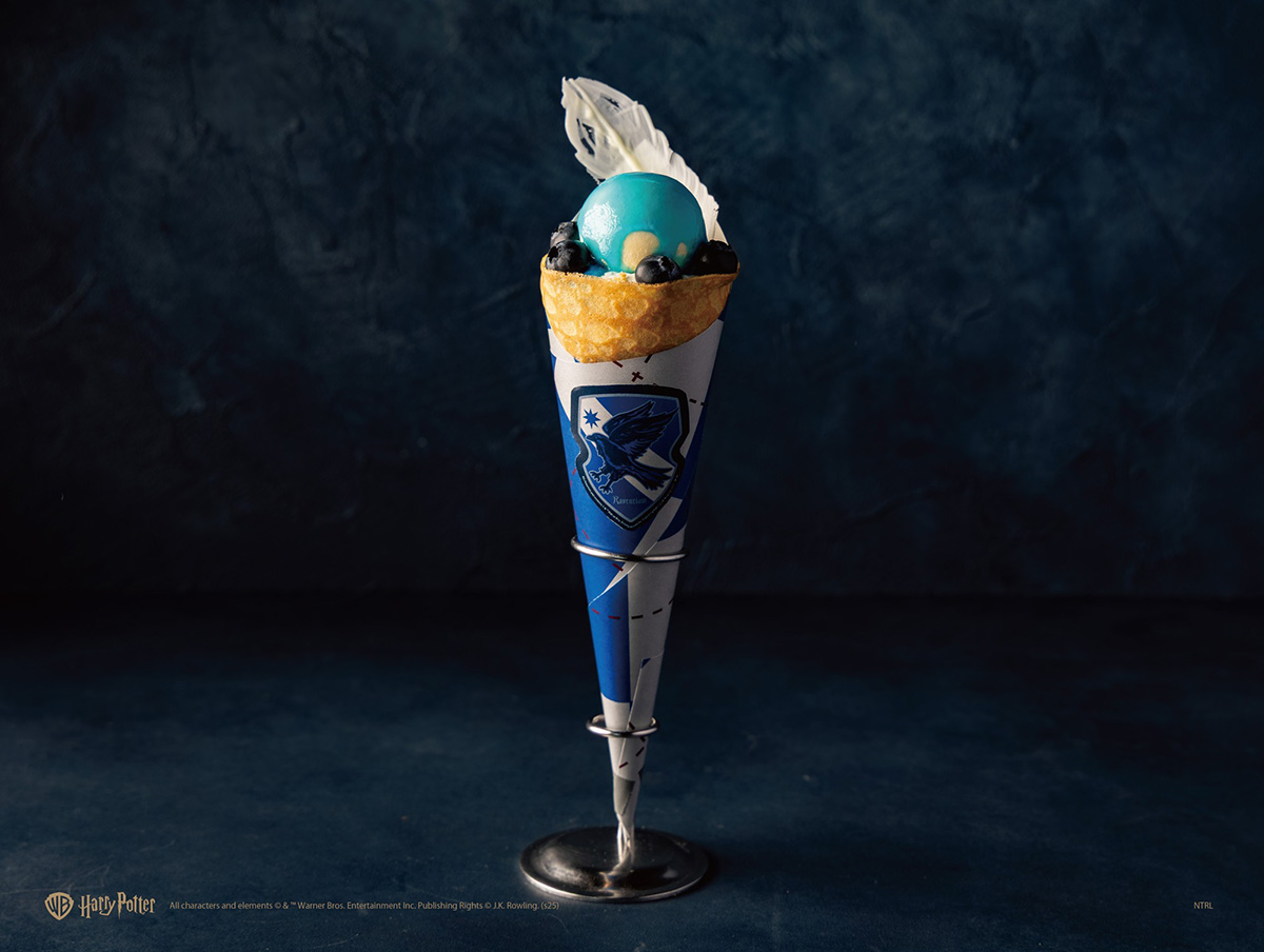知恵、機知、知識を司るレイブンクローをイメージしたブルーソースとブルーベリーのクレープ。濃厚なホワイトチョコムースに爽やかなブルーソースとフレッシュブルーベリーの相性が良い。中にはブルーベリージャムとカスタード、ホイップがたっぷりの贅沢な一品。