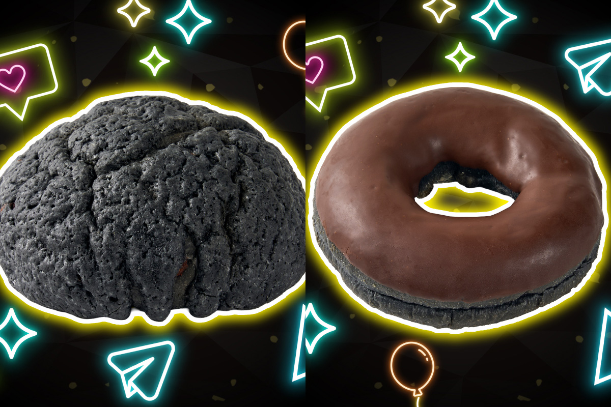 「黒」をテーマにした食べ物で登場するのは「ブラックメロンパン」「ほおばりんぐドーナツ ブラック」「お店で焼いたブラッククッキー」など6種類。