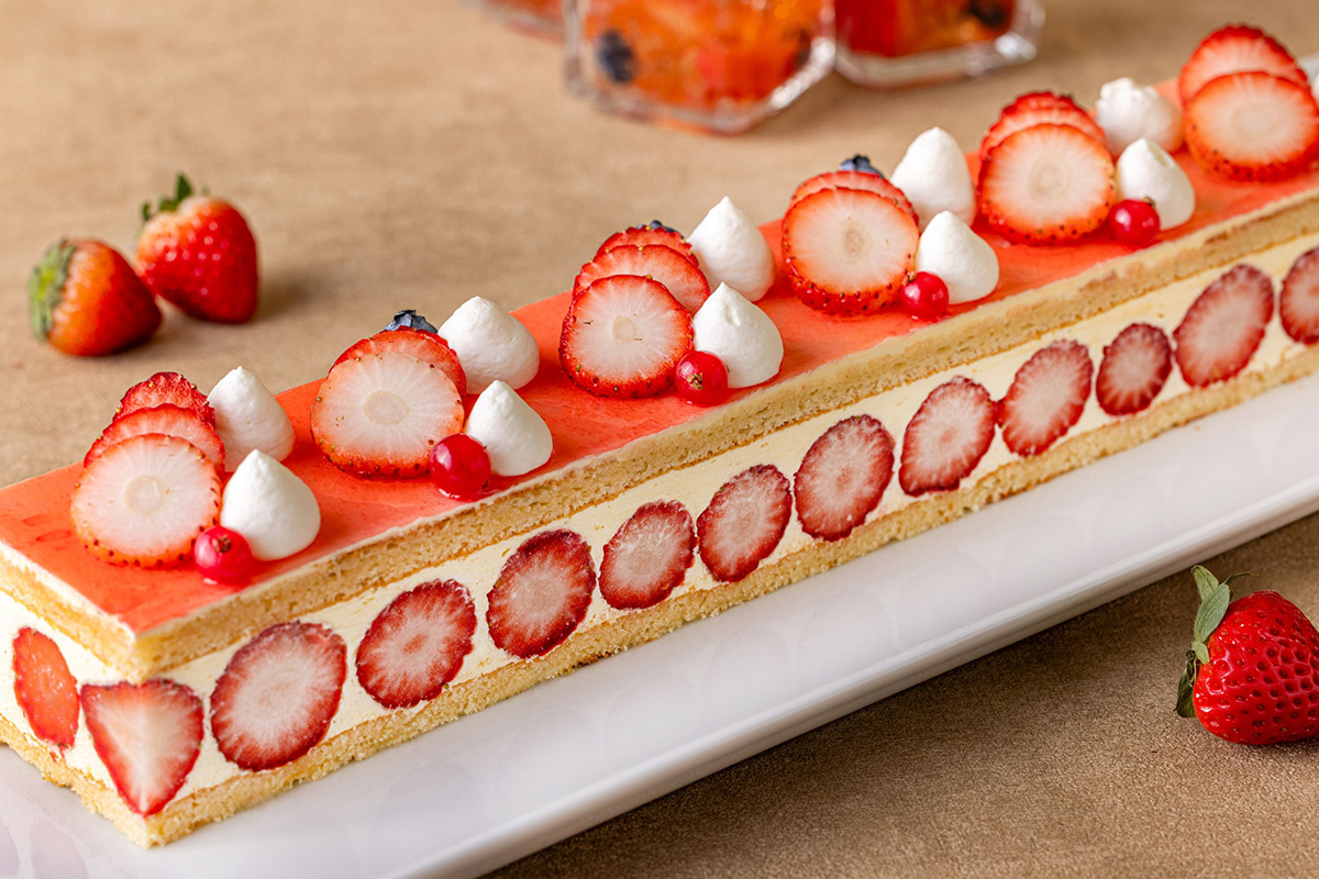 「Sweets Parade ~ストロベリー~」では、新ペストリーシェフ・佐藤浩一氏が手掛ける、旬の苺を主役にした多彩なストロベリースイーツが揃う。王道の「苺のショートケーキ」は、北海道産生クリームを加えて焼き上げた、しっとりとしたスポンジに、フレッシュな苺の甘みと酸味が重なり合う一品。