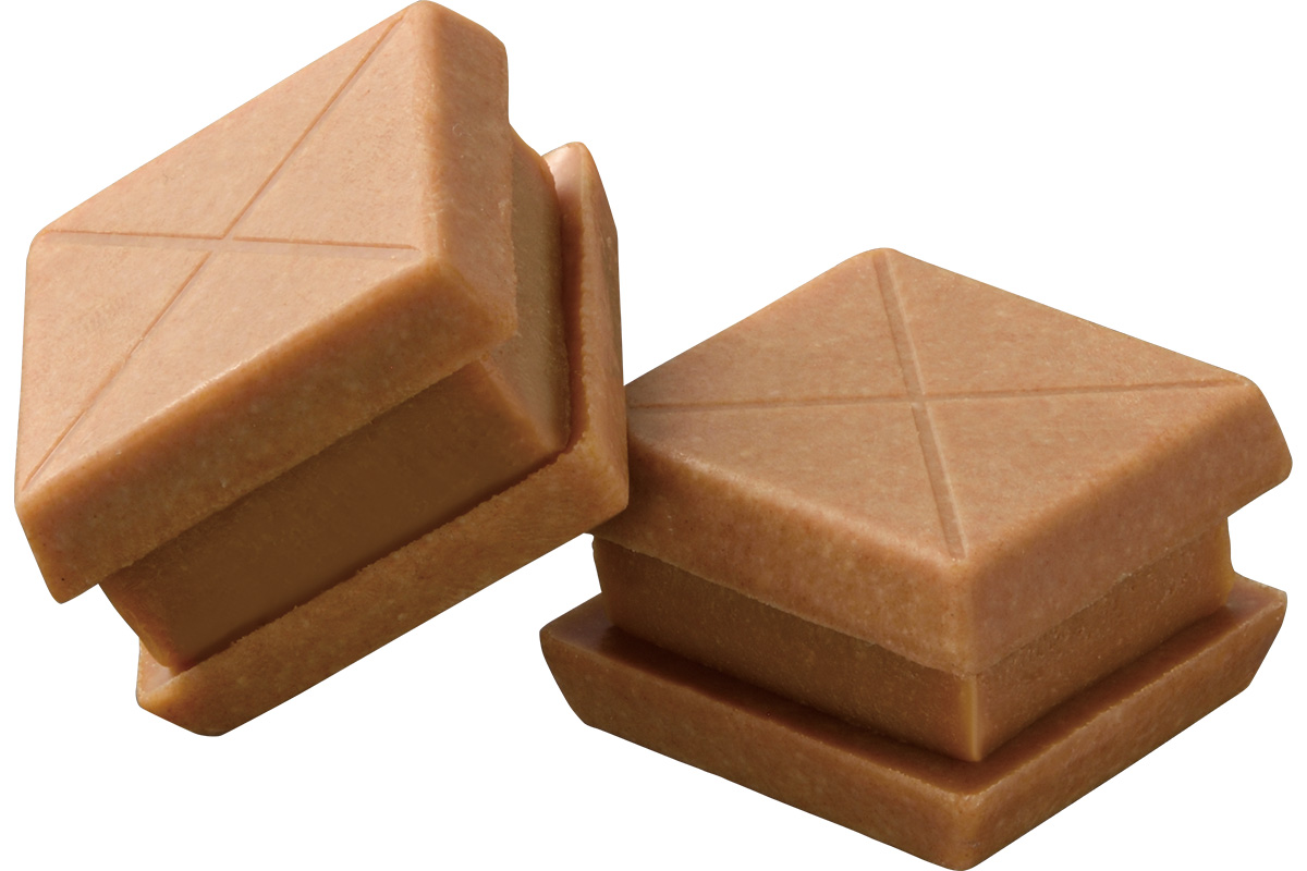 「北海道生食感チェルシーバタースカッチ味」を、焼き菓子が練りこまれたサクサク食感のキャラメルチョコレートでサンド。生食感チェルシーバタースカッチ味を、サクサクキャラメルチョコと組合せることで、生食感チェルシーの食感とバタースカッチ味の味わいが、さらに進化している。