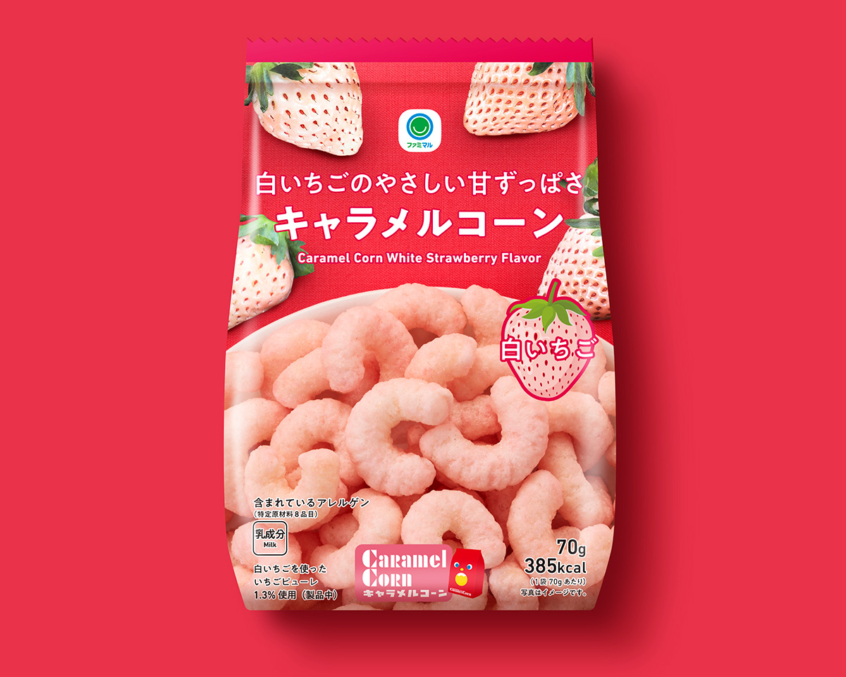 白いちごの甘ずっぱく爽やかな味わいが楽しめるキャラメルコーン。