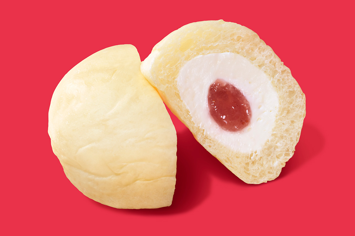 福岡県産あまおうを使用したいちごジャムとミルククリームを包んだ、とろける食感のくりーむパン。