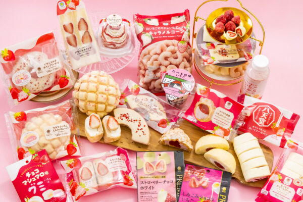 「バトンクッキー[さくらベリー]」は、ほんのり桜色のクッキーの片面に、桜が香るストロベリー風味のチョコレートをコーティング。ココナッツを入れたさくさく食感のクッキーの香ばしさに、やさしく香る桜とストロベリーのほのかな風味が調和する。