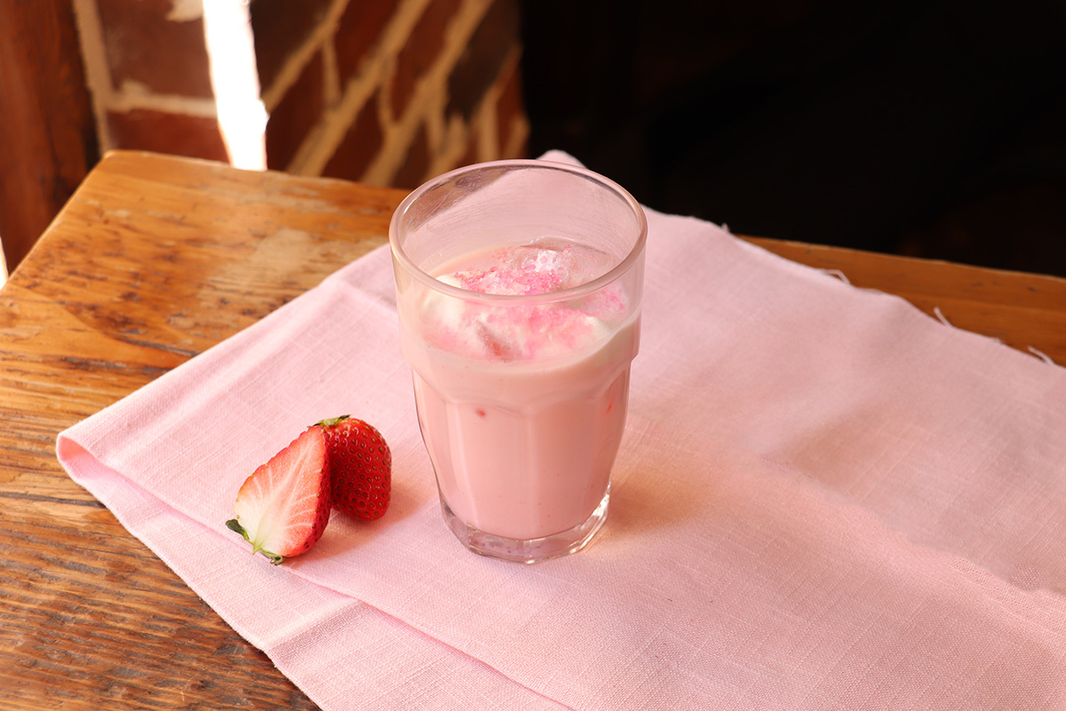 「いちごみるく」の味わいをイメージし、ほんのりコクのある甘さを重ねた、やさしいミルクセーキとなっている。