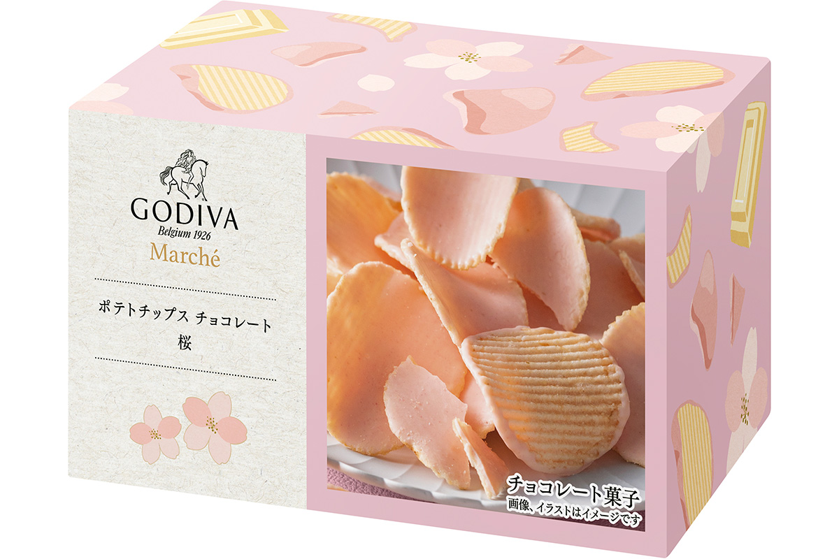 サクッとした食感のポテトチップスに塩漬けした桜と葉をパウダー状にしてブレンドしたチョコレートをコーティング。桜の香りとやさしいホワイトチョコレートの甘みがポテトチップスの塩気とよく合う。