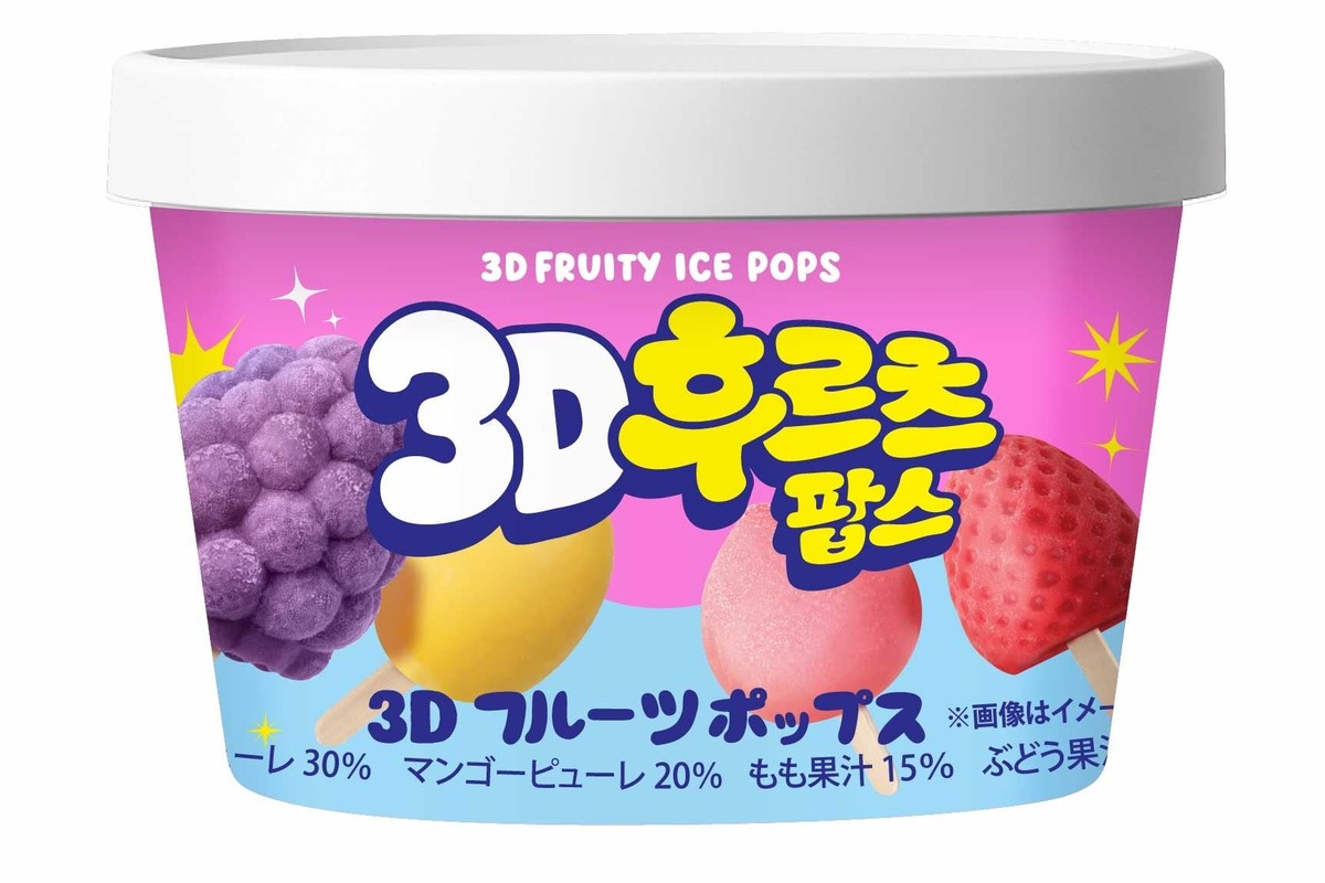 昨年発売された「3Dアイス」は、本物のフルーツのような立体的な造形となめらかな食感でSNSを中心に大きな反響を呼んだ人気商品だ。今回はその「3Dアイス」をひとくちサイズにして4種類をひとつの箱に詰め合わせた「3Dフルーツポップス」として進化して登場する。