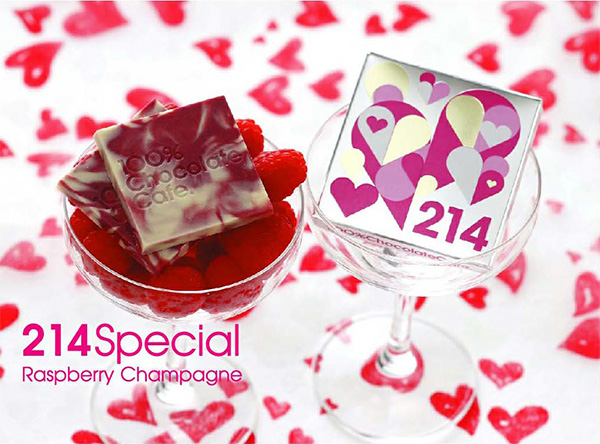 人気定番アイテム「214スペシャル」は、鮮烈なラズベリーの風味と芳醇なシャンパーニュの味わいのチョコレートをハートがいっぱいの可愛いパッケージで包んだ「ラズベリーシャンパン」。