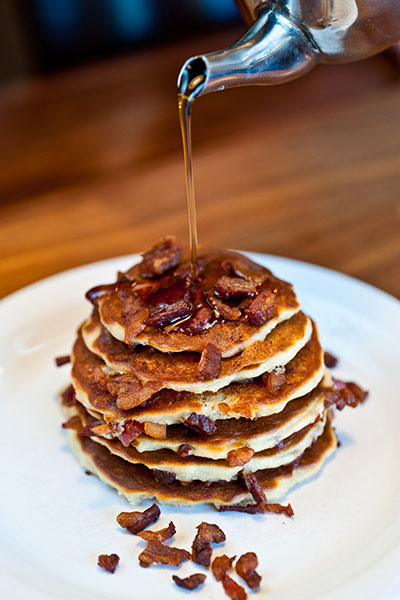 ・バターミルクパンケーキ ベーコン・ ソルトバター、100%ピュアメープルシロップ