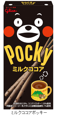 『ミルクココアポッキー』は、「くまモン」をパッケージにデザインしているだけでなく、