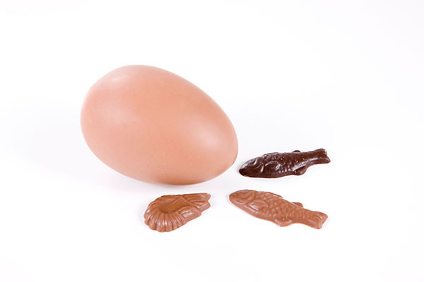 ショコラでできているとは思えないほど、本物そっくりの卵形ショコラ。中には海の生き物をかたどった「フリチュール」が入っています。