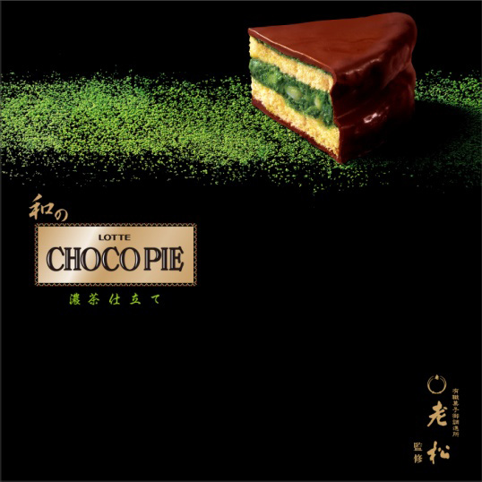 「和のチョコパイ[濃茶仕立て]」は、京都の老舗和菓子屋である「老松」が監修。クリーム中の抹茶には濃茶「萬風ノ昔」(祇園辻利)を使用している。濃茶クリームの中には高級豆で珍しい白小豆を使用した、かのこ豆を混ぜ込んでおり、クリームの味を引き立てると共に、断面の美しい色合いを表現している。
