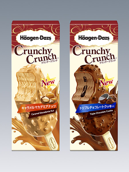 ハーゲンダッツジャパンは、ハーゲンダッツのワンハンドカテゴリーの新タイプ、ハーゲンダッツクランチークランチ『キャラメルマカデミアナッツ』、『トリプルチョコレートクッキー』を2013年6月10日より、全国で新発売。