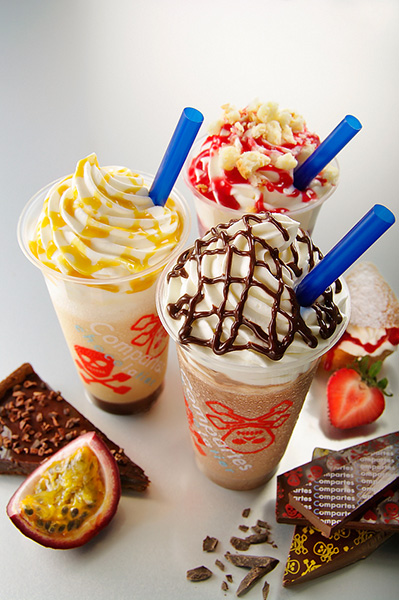 「ラブフローズン」は、夏でもチョコレートを美味しく味わえる色鮮やかなフローズンタイプのスイーツ。シンプルながらも、カカオの風味を存分に味わえる「チョコレートクラシック」、オーナーショコラティエJonathanがデザートプロデュースする『GRAHM’S CAFÉ Los Angeles(グラムズカフェ ロサンゼルス)』の人気デザート「ショコラタルト」をイメージしドリンクにした「パッションキャラメル」、