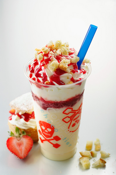 「ストロベリーショートケーキ」は、リッチなミルクベースに、ストロベリーとラズベリーをミックスした酸味の効いたソース。ホイップの上には砕いたスコーンが乗っていて、まさに飲むストロベリーショートケーキ!