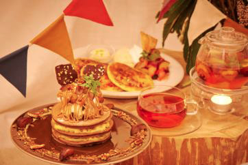 期間限定メニューを一足先に食べられる試食会『Tasting tea party』は、秋の味覚がたっぷりつまった限定パンケーキ(ドリンク付)を1組2名様3,150円で楽しめる。