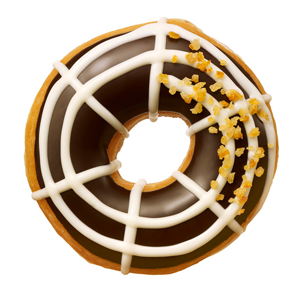 『オレンジチョコ スパイダー』は、見た目はチョコレートなのに味はオレンジの“トリックドーナツ”。ホワイトチョコレートでくもの巣を描き、チョコレートとオレンジがマッチした風味豊かな味わい。
