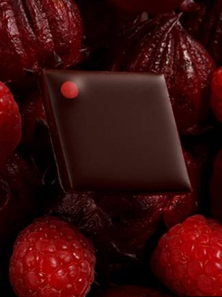 女性の美しさに捧げるボンボンショコラです。美容によいことで知られるハイビスカスの食用種ローゼルのパート ド フリュイとラズベリーを組み合わせたショコラをつくりました。
