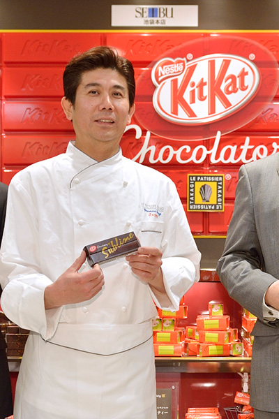 「キットカット ショコラトリー」は「ル パティシエ タカギ」のオーナーシェフ高木康政氏が全面監修。クーベルチュール ビターチョコレートを使い、手作業で仕上げた「キットカット サブリム ビター」、抹茶ペーストを練り込んだホワイトチョコレートと、サクサクのウェハースの層間のクリームに桜庭エキスパウダーを練り込んで合わせた「キットカット ショコラトリー スペシャル サクラグリーンティ」、ウェハース層間のクリームにていねいに焙煎された唐辛子を練り込みミルクチョコレートでコーティングした「キットカット ショコラトリー スペシャル チリ」と、このショップでしか買えない特別な3種類の商品がラインナップされており、今後も高木シェフが監修するショップ限定商品や季節限定商品などを発売して行く予定だ。