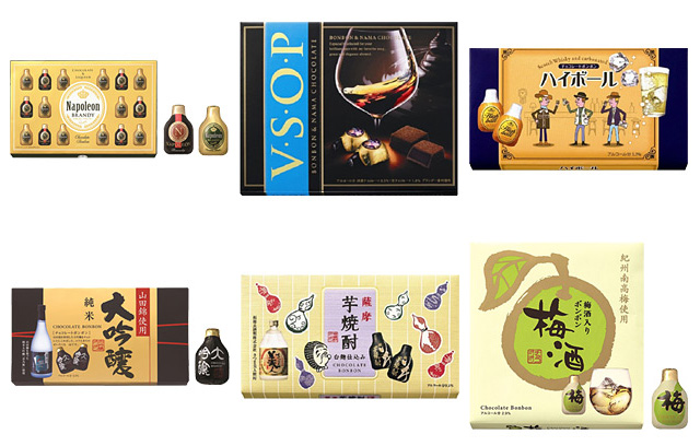 ウイスキーやブランデーの入ったウイスキーボンボンから、清酒・焼酎やワイン、梅酒などが入ったチョコまで、約30種類の豊富な品ぞろえで展開。通信販売で即日配送している。