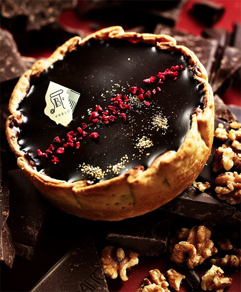旬のフルーツや四季に合わせた食材を贅沢に使用したPABLOの季節限定チーズタルト。バレンタインの季節限定「チョコチーズタルト」は、チョコチーズタルトをベースにチョコクリーム、チョコグラサージュの三層が贅沢なチーズタルト。くるみとフランボワーズをアクセントにした、食べごたえのある濃厚な味わいとなっている。