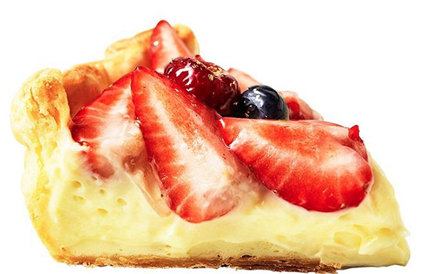 「あまおう苺のチーズタルト」は、カスタードクリームと生クリームを合わせ、 フランボワーズ・ブルーべリー・あまおうをあしらった。あまおうの甘さがチーズタルトの美味しさをさらに引き立ててくれる。