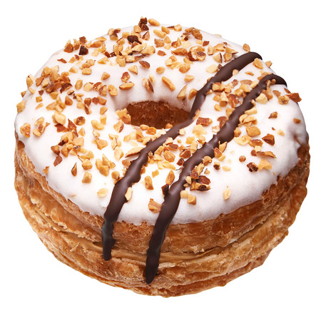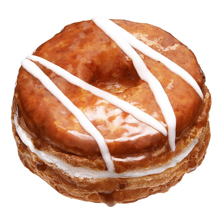フライしたクロワッサン生地をさらにオーブンでサクサクに焼き上げ、ホイップクリームをサンド。メープル風味のグレーズでコーティングし、ホワイトチョコでデコレーション。