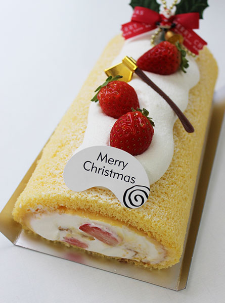 定番人気の苺のクリスマスロール。